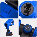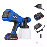 Краскопульт имеет контейнер объемом 1200 мл и 2 сменных сопла. Небольшой вес, ручка с элементами из прорезиненного материала добавляют удобства оператору, снижают нагрузку на руку и обеспечивают более длительное использование инструмента. 2 аккумулятора обеспечивают в два раза более длительную работу. Пока один аккумулятор на зарядке, вы можете продолжать работать с другим.