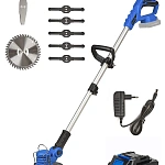 Богатая комплектация режущих инструментов(круглое металлическое лезвие, прямой металлический нож и 5 пластиковых ножей) позволяют скашивать различные виды растений: кусты, борщевик, траву т.д.
