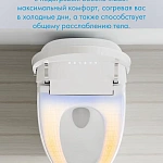 Встроенная сенсорная система запускает смыв после того, как вы встанете с сиденья. Вы можете регулировать температуру сиденья для большего комфорта. Откройте крышку, и вы увидите индикатор температуры