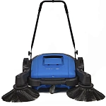 Основные преимущества: Рабочая ширина 980 мм Рабочая скорость 4 км /ч Максимальная рабочая площадь: 3980 м2 /ч Вместимость контейнера 40 л Регулировка глубины передних щеток 10 мм Регулировка глубины роликовой щетки 6 ступеней (0-10 мм) Две передние круглые щетки размером 370 мм, Задняя роликовая щетка размером 1020 мм, Переднее колесо 1шт 75 мм Задние колеса 2 шт. x 290 мм