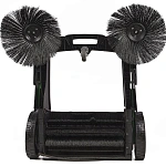 В передней части расположена ручка для удобной транспортировки. Благодаря двум передним и двум задним роликовым щеткам эта компактная подметальная машина позволяет производить уборку легко и в 5 раз эффективнее стандартной уборки метлой. Две щетки, расположенные в днище машины, вращаясь с высокой скоростью, практически всасывают грязь и мусор, как пылесос. Губчатый фильтр задерживает весь мусор в контейнере, а отверстия на крышке корпуса позволяют стабилизировать воздушное давление, возникающее в нижней части машины.