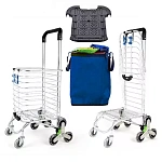 С нашей сумкой-тележкой очень удобно ходить по магазинам. При желании ее можно зацепить за магазинную тележку при помощи двух крючков, которые входят в комплект. Тканевую сумку при необходимости можно вынуть из корзины и использовать отдельно. А если сложить корзину, то тележку можно использовать для перевозки более габаритных грузов.