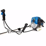 Необходимо упомянуть и о том, что на данном устройстве установлена удобная рукоятка велосипедного типа для естественного и эргономичного движения косы, а также эргономичный профессиональны ремень, равномерно распределяющий нагрузку на оба плеча оператора, тем самым обеспечивая более комфортное состояние при работе. Триммер обеспечивает превосходную силу тяги и высокий крутящий момент. Он идеально подходит для быстрого и эффективного кошения больших зеленых насаждений и крупных сорняков. Благодаря ножу, поставляемому в комплекте с триммером, эту модель можно использовать даже для обрезки кустарников и тонких деревьев. А при помощи заменяемой резьбовой головки с леской, устройство подойдет для обработки кромок газонов, приствольных кругов вокруг деревьев, а также краев дорожек и площадок на садовом участке.